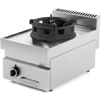 Deze krachtige wokbrander uit de 650 LINE van Unni-Cooking. Deze hoogwaardige wokfornuis is een krachtpatser met een vermogen van 15 kW, waarmee je gerechten snel en gemakkelijk kunt bereiden. De professionele gaswokbrander met enkele brander is perfect geschikt voor het bereiden van vlees, kip en groenten. Op de duurzame gietijzeren ring van Ø28 cm kun je elke wokpan plaatsen die geschikt is voor gas. Dankzij de robuuste constructie, krachtige gietijzeren brander en duurzame pannenring is deze wokbrander ideaal voor intensief dagelijks gebruik in de horecakeuken. Dit model is voorzien van een waakvlam en een gasveiligheidsklep met thermokoppel. Je kunt hem gebruiken met propaangas of aardgas. Bovendien is dit wok fornuis snel en eenvoudig schoon te maken. Zowel de brander, pan ring als de lekbak zijn afneembaar, waardoor je ze gemakkelijk kunt reinigen. Een combinatie van kracht en veelzijdigheid maakt deze hoogwaardige wokbrander een unieke. Het wokfornuis is standaard te gebruiken met aardgas, maar een set om het om te bouwen naar propaangas wordt meegeleverd.
