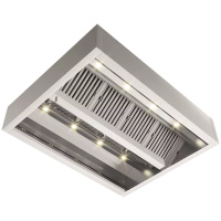 Deze hoogwaardige inductie eiland afzuigkap is een perfecte toevoeging aan uw professionele horeca keuken. Dit model is gemaakt voor plaatsing op het plafond boven uw horeca apparatuur. Deze horeca afzuigkap is gemaakt van hoogwaardig RVS AISI 430 en is verkrijgbaar in verschillende afmetingen. Om een goede werkoppervlak verlichting te creëren zijn alle afzuigkappen voorzien van hittebestendige LED verlichting. De LED lampen zitten geïntrigeerd in een RVS paneel dat uit één geheel is gemaakt. Dit ziet er strak uit en maakt reinigen eenvoudig. De bekabeling is hittebestendig zodat hitte geen probleem kan vormen. De lamellen filters zijn uitneembaar en het binnenste gedeelte van de kap is onder 45° schuin geplaatst. Doormiddel van de aanwezige aftapkraan kan het vet gemakkelijk afgevoerd worden. Aan de voorzijde is een lucht toevoerplaat geplaatst. Hiermee wordt het verse lucht naar binnen geblazen. De hoeken van de afzuigkap zijn compleet gelast. Dit geeft garantie voor een prachtige uitstraling en het vet heeft geen enkel kans om te lekken.