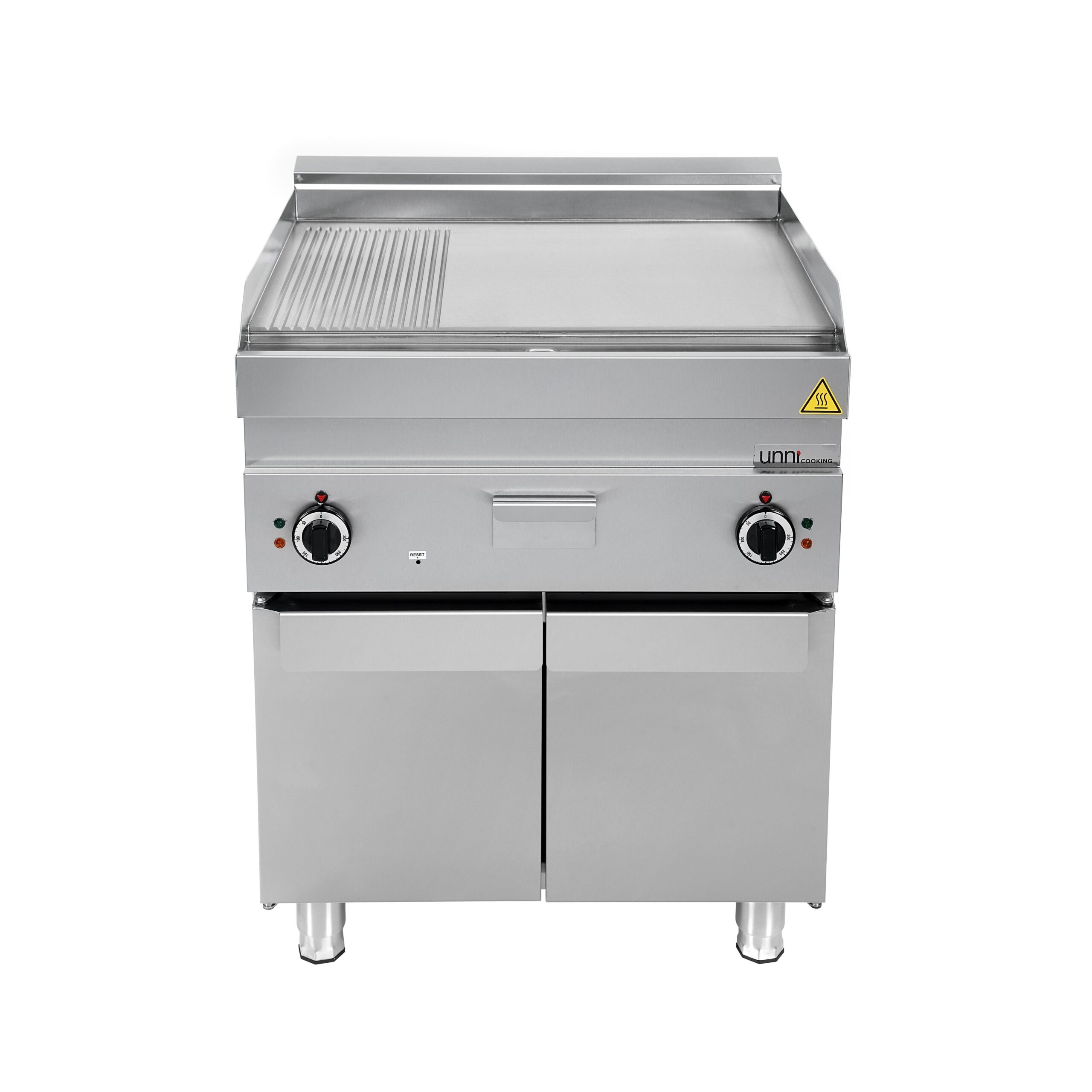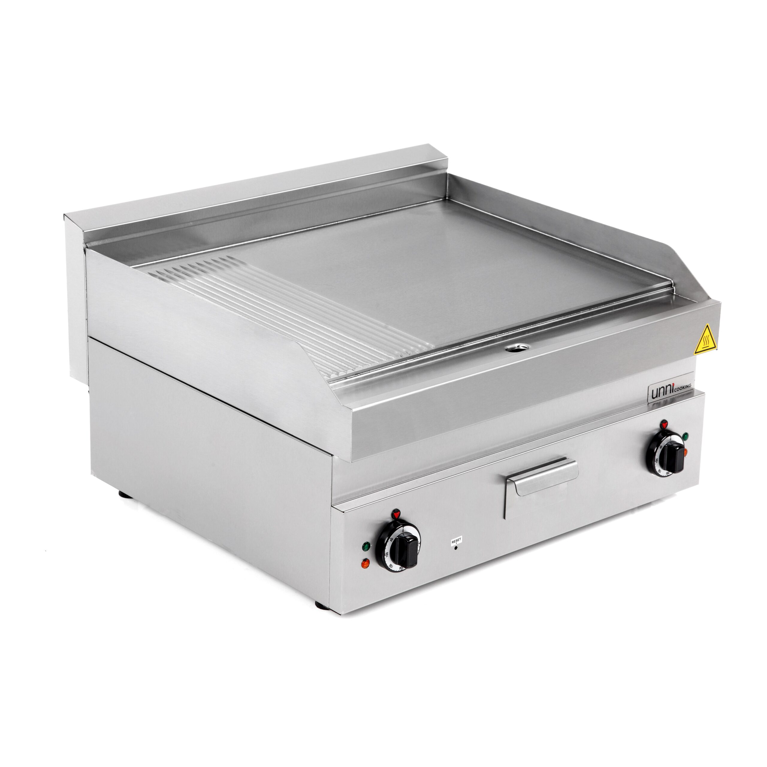 Deze professionele bak-/grillplaat van de 650 SERIES kooklijn van UNNI-COOKING heeft een behuizing van RVS. Het RVS bak oppervlak is gedeeltelijk glad en gedeeltelijk gegroefd. Dit model tilt je kook- en grillervaring naar een hoger niveau. Het is de perfecte keuze in een drukke keuken waar veel gekookt en gegrild wordt. De duurzame behuizing van roestvrij staal zorgt voor een lange levensduur van het apparaat en maakt het gemakkelijk schoon te maken.