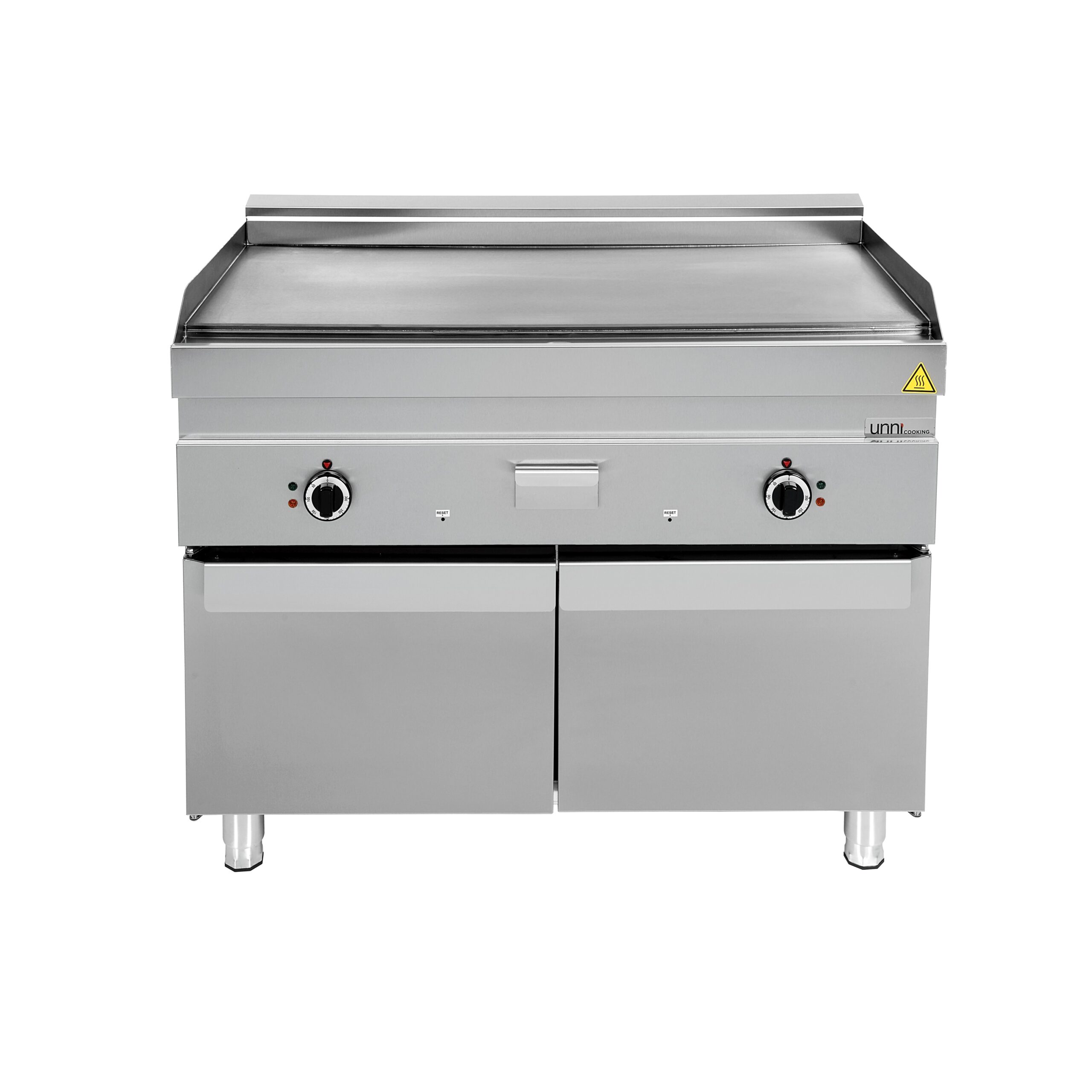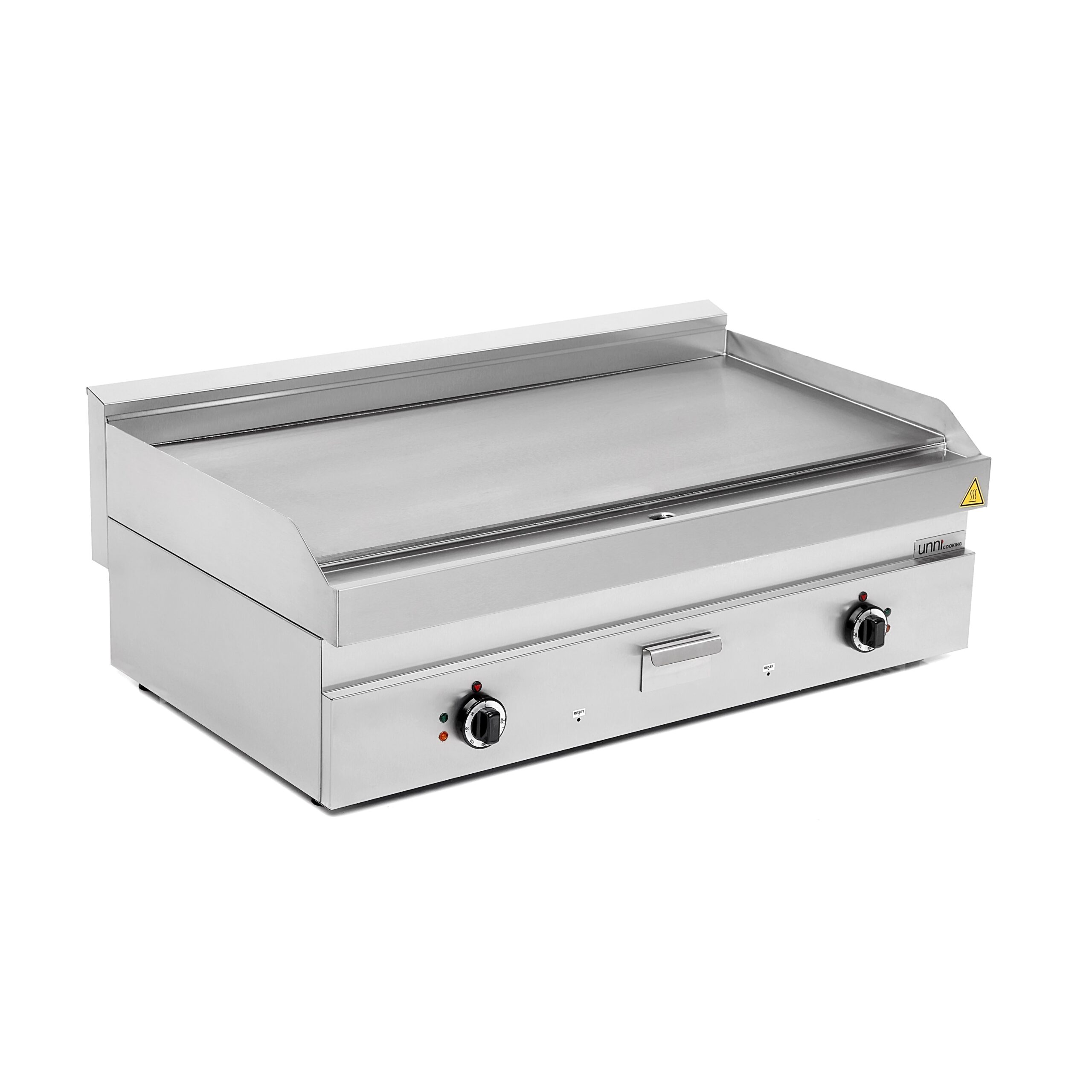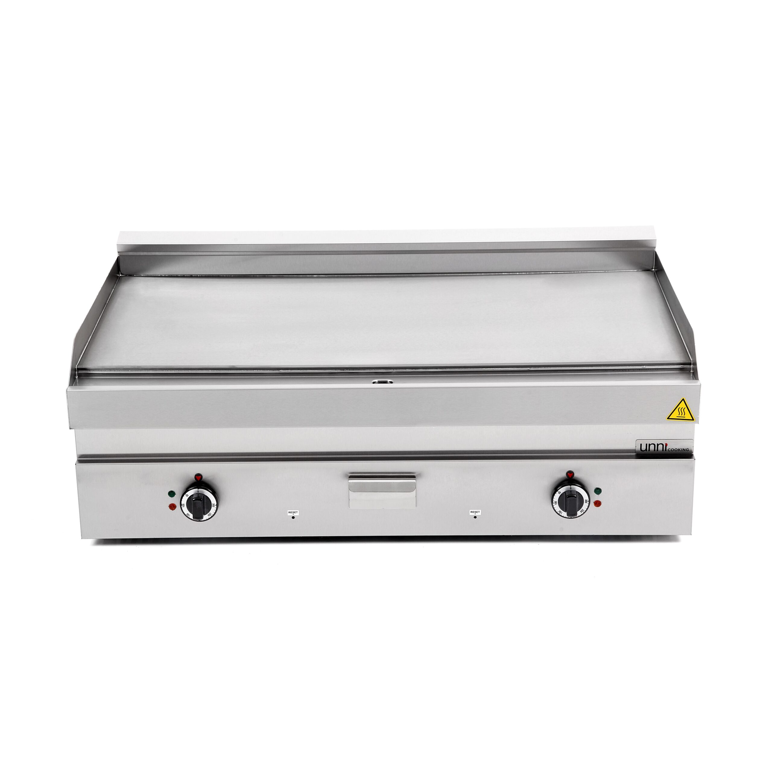 De gladde RVS bakoppervlakte van de plaat is perfect voor het bereiden van kipspiesjes en andere lekkernijen. Met de hoogwaardige thermostaat van merk EGO stel je de temperatuur nauwkeurig in, variërend van 50°C tot 300°C. Zo bereid je altijd jouw gerechten op de perfecte temperatuur.