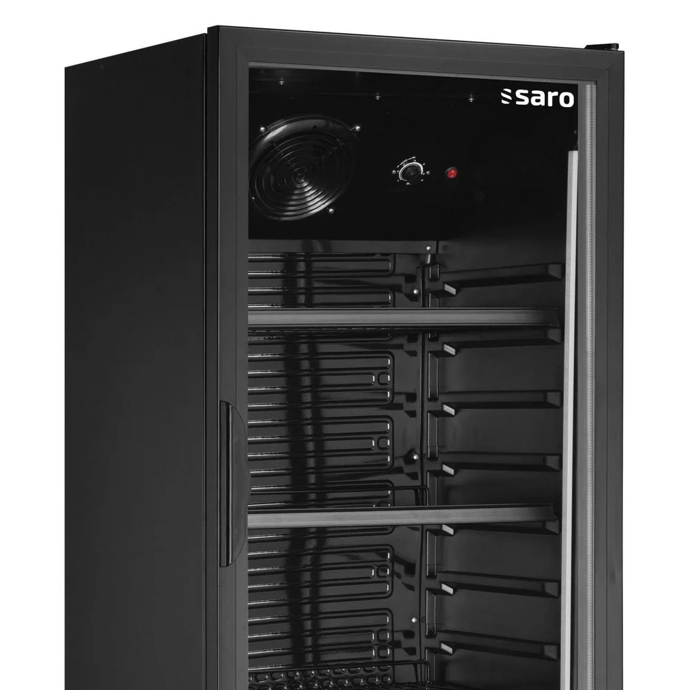 Een stijlvolle koelkast met zelfsluitende glazen deuren van Saro. Voorzien van 1 dubbel glas deur die afsluitbaar is, en 5 verstelbare roosters waarmee je de inhoud goed kunt indelen. Met een netto inhoud van 337 liter is deze horeca koeling toch een grote in zijn klasse. Door het grote glas oppervlak en de interne LED verlichting zijn alle producten altijd goed zichtbaar, waardoor het presenteren van uw producten veel aantrekkelijker wordt.