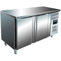 Verder is deze koelwerkbank 2 deurs voorzien van zelfsluitende deuren met praktische magneetdichting, automatische ontdooiing en een uitschuifbare compressor voor eenvoudige reiniging. Bovendien biedt dit model met een netto inhoud van 155 liter genoeg ruimte om een ruime hoeveelheid producten koud te bewaren.