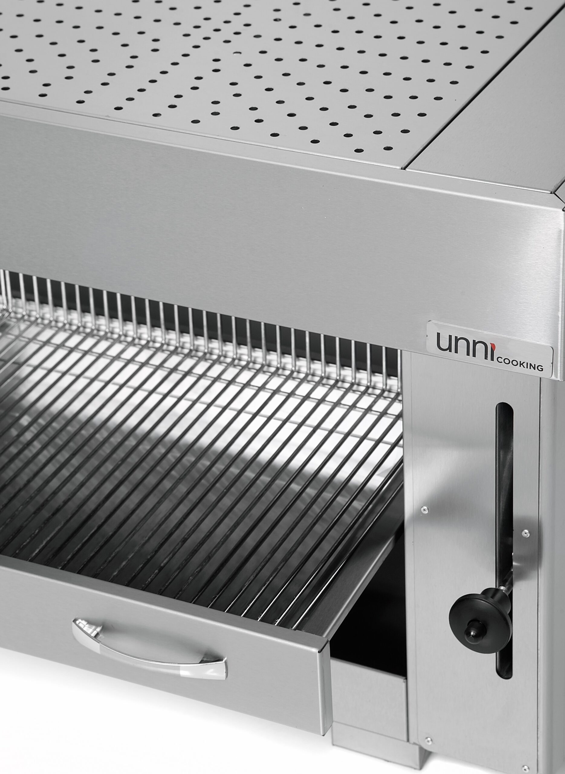 De pita oven is in hoogte verstelbaar. Met een sterke schuifsysteem is het bodemrooster goed af te stellen op de verwarmingselementen. Dit resulteert in een optimale bakresultaat.
