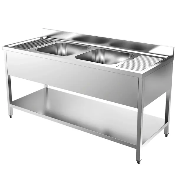 RVS Spoeltafel met bodemschap | Qusinox | Premium line | 2 spoelbakken midden | Demontabel | 2000x700x(h)850/900mm