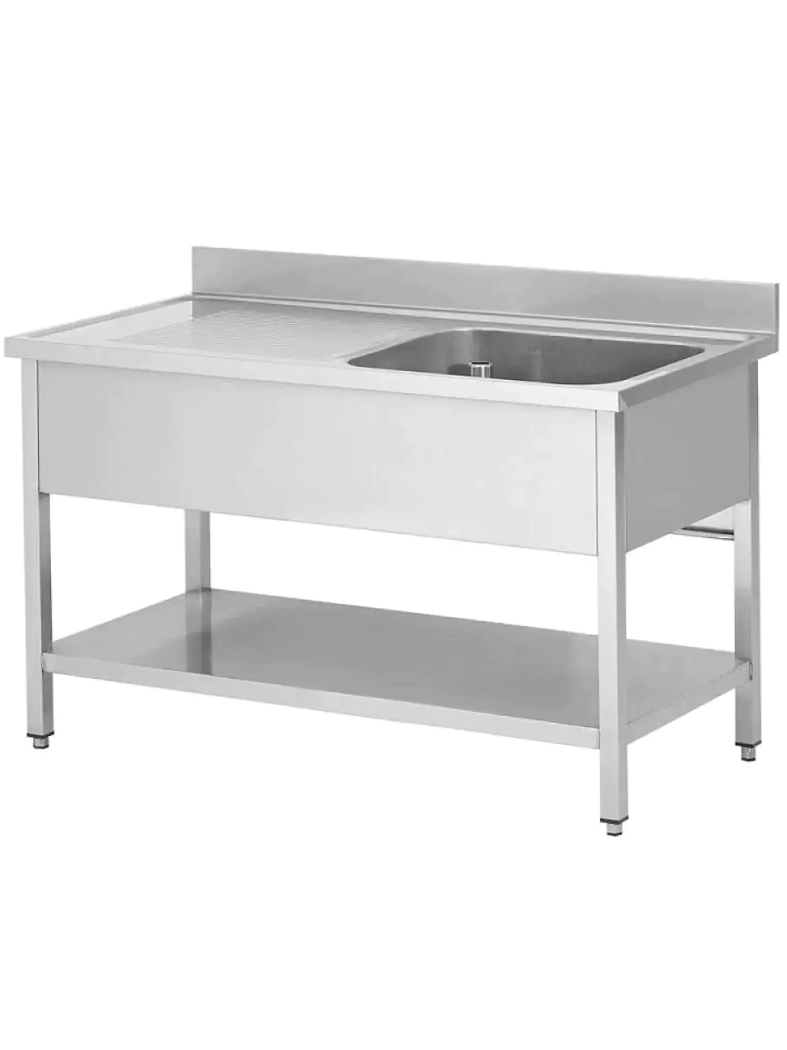 RVS Spoeltafel met bodemschap | Unninox | ECO line | 1 spoelbak rechts | Demontabel | 1400x700x(h)850mm