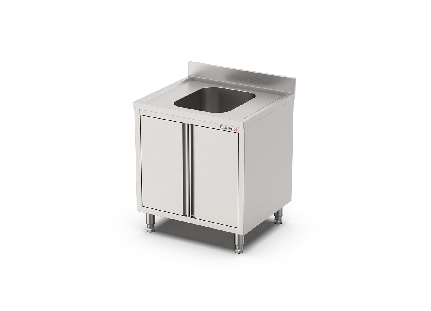RVS Spoeltafel met draaideuren | Qusinox | 700 LINE | 1 kuip | 700x700x(h)900mm