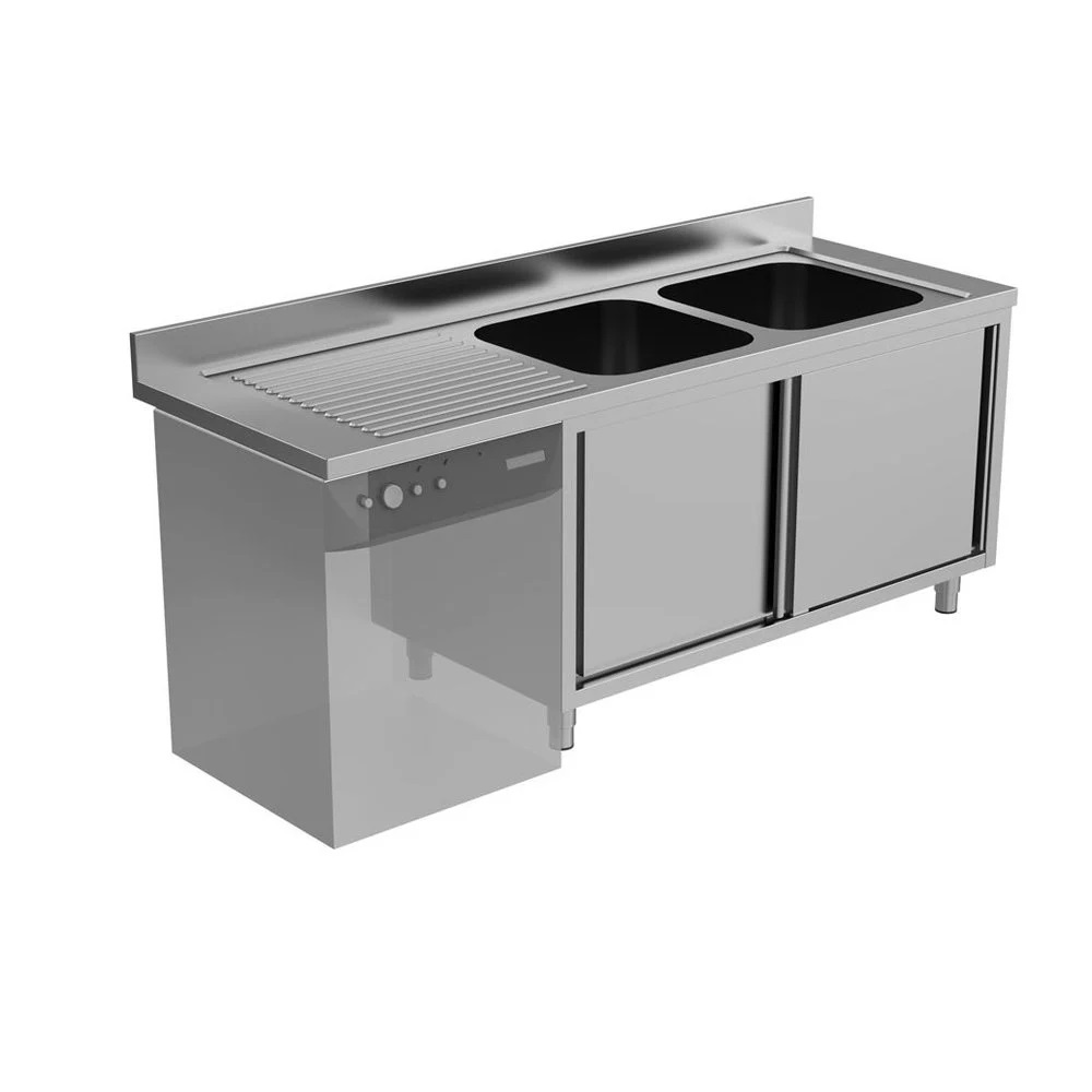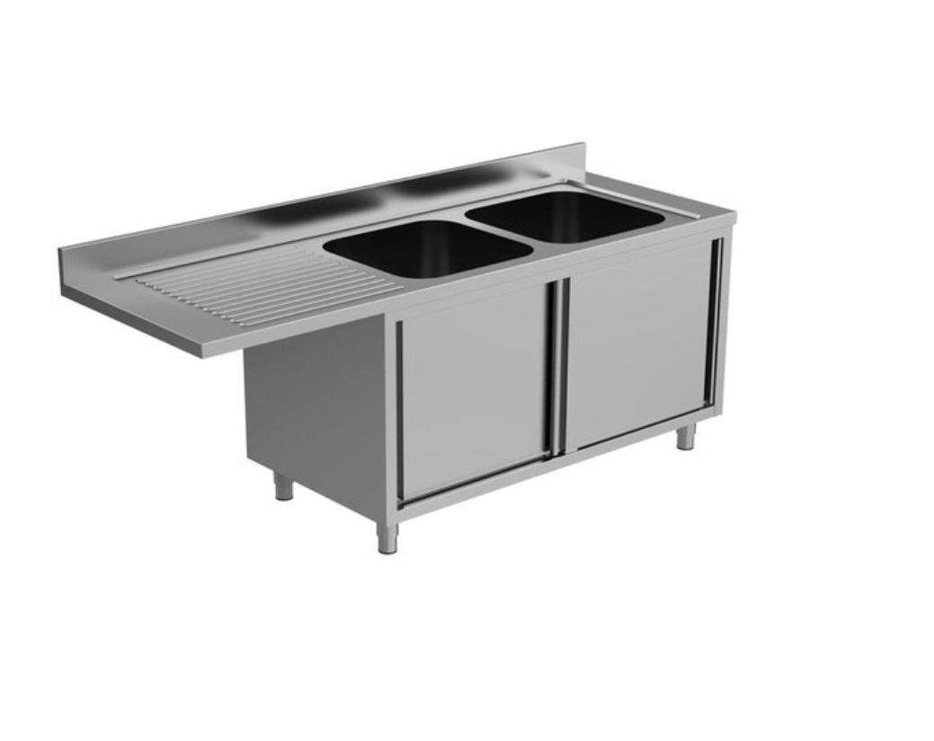 Deze hoogwaardige RVS spoeltafel met schuifdeur van Unninox heeft een diepte van 700 mm. Deze RVS horeca spoeltafel is voorzien van een 2 spoelbakken rechts en ruimte voor de vaatwasser aan de linker kant. De afgeronde hoeken en gladde oppervlakken maken het reinigen eenvoudig. Met de instelbare hoogte kan de spoeltafel op alle ondergronden stabiel geplaatst worden. De spoeltafel is voorzien van een onderkast met 2 schuifdeuren. Dit model heeft hierdoor extra opbergruimte wat erg handig is, omdat alle benodigde producten altijd bij de hand zijn en alles kan netjes opgeborgen worden. Het bovenblad (spoelblad) is vervaardigd uit AISI-304. De body van deze spoeltafel is geproduceerd met duurzaam RVS AISI-430 en voldoet aan alle geldende hygiëne- en veiligheidsvoorschriften.
