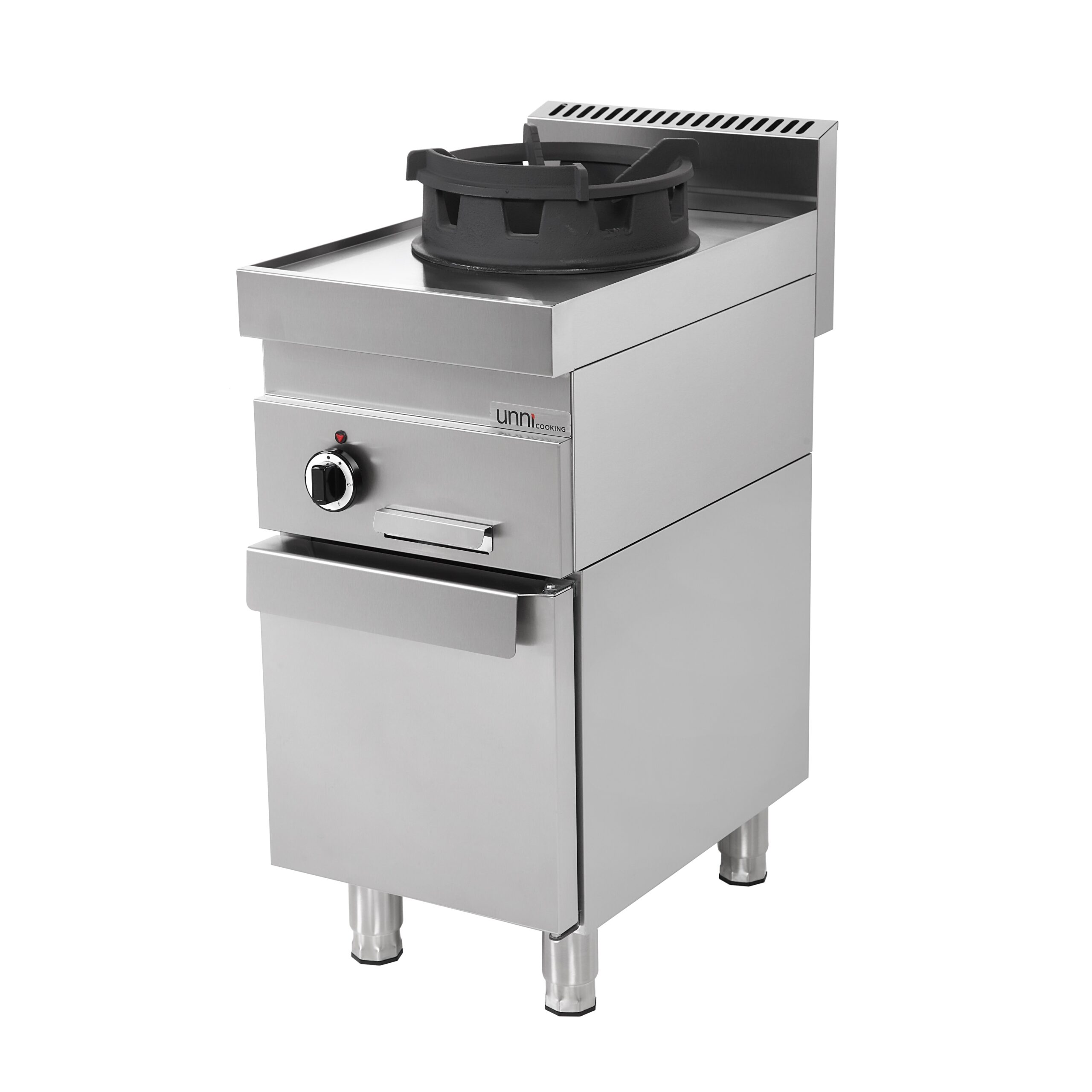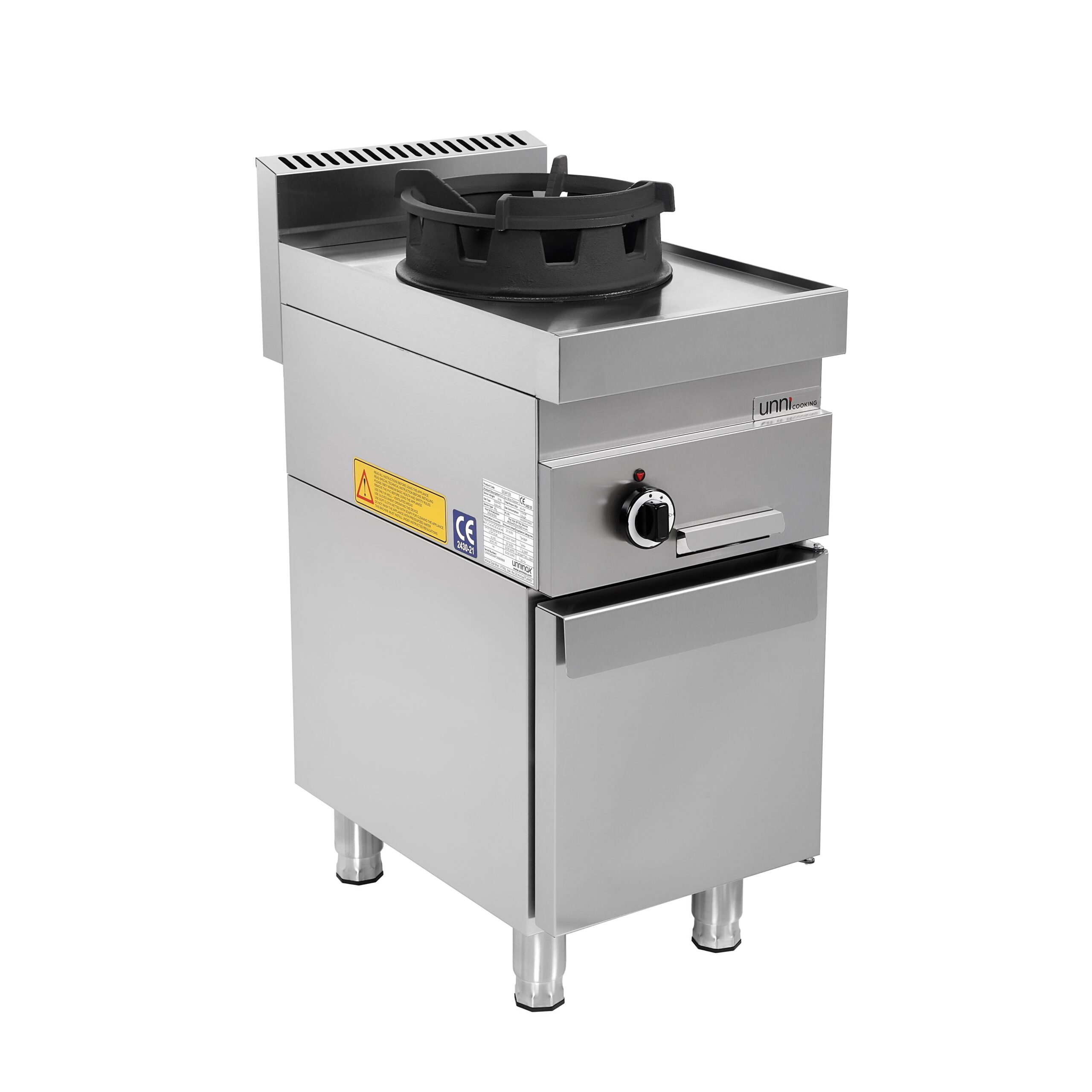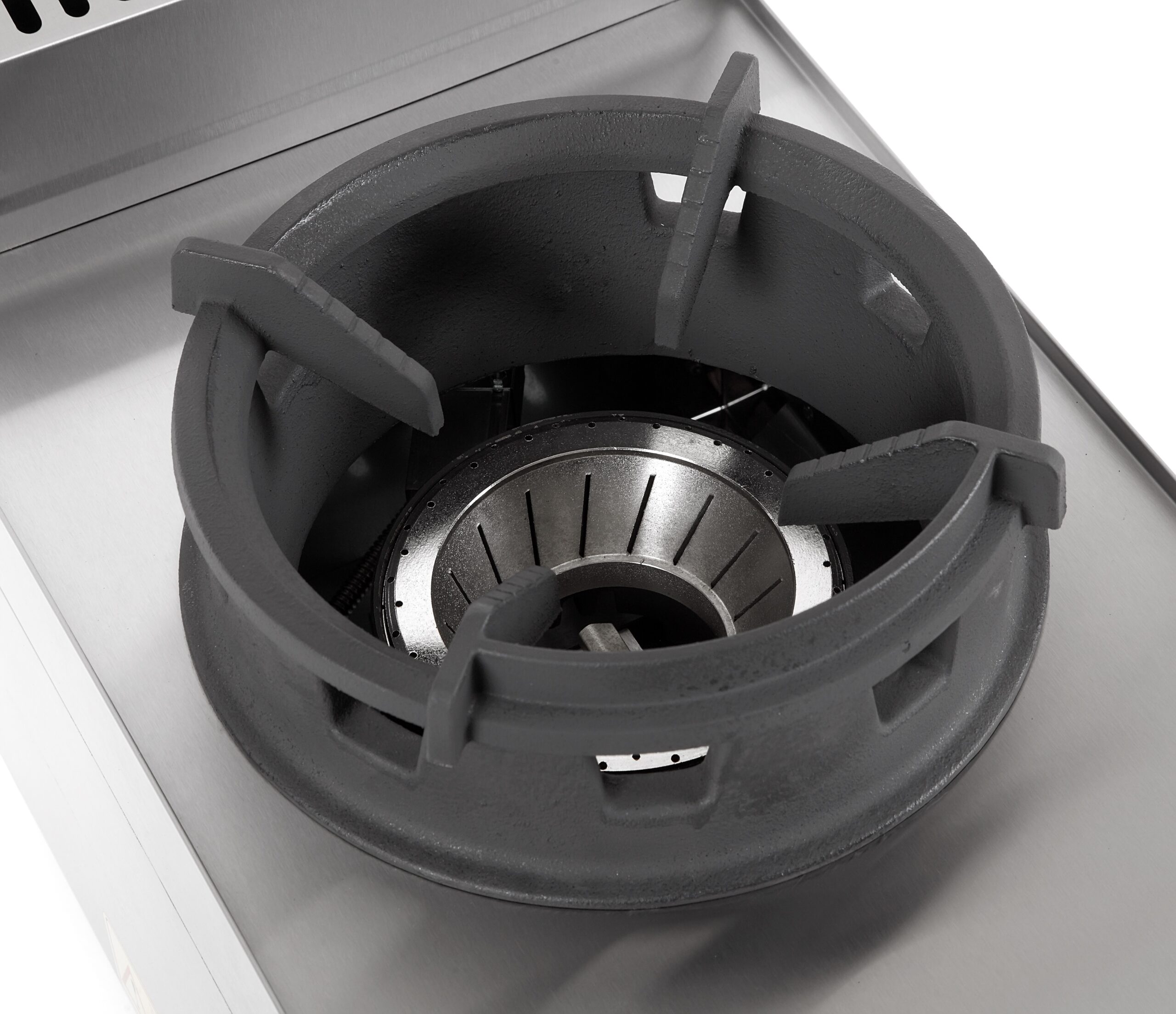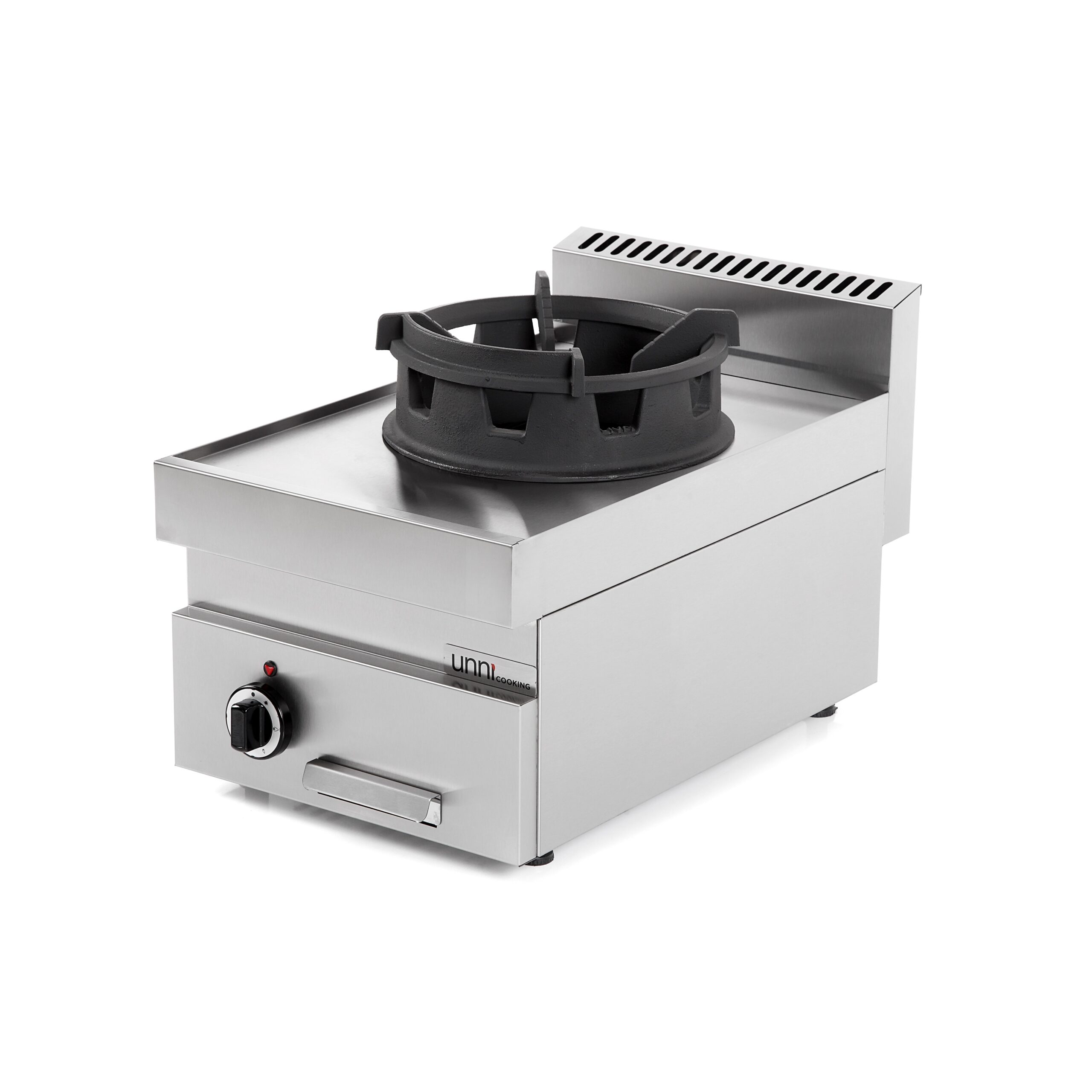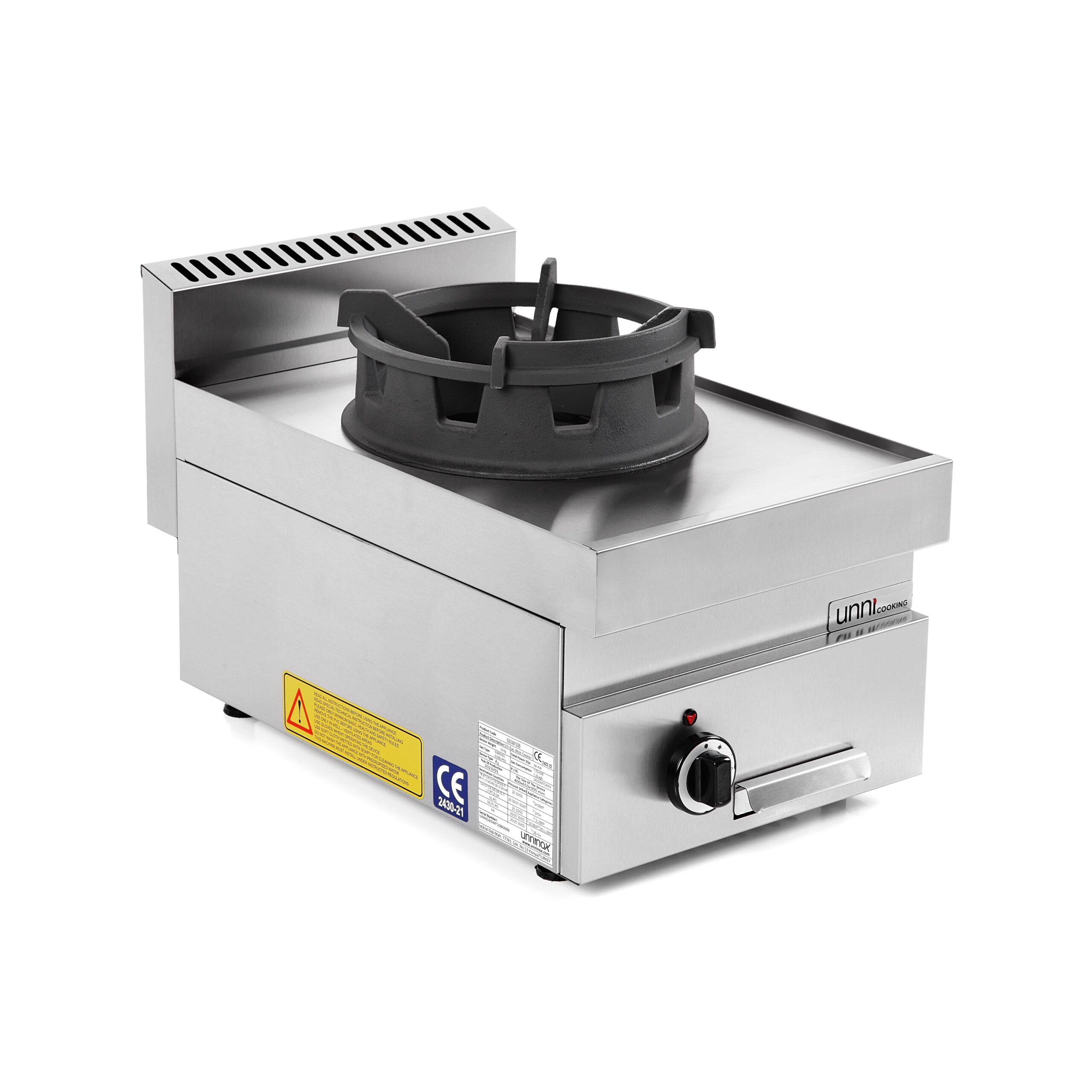Deze krachtige wokbrander uit de 650 LINE van Unni-Cooking. Deze hoogwaardige wokfornuis is een krachtpatser met een vermogen van 15 kW, waarmee je gerechten snel en gemakkelijk kunt bereiden. De professionele gaswokbrander met enkele brander is perfect geschikt voor het bereiden van vlees, kip en groenten. Op de duurzame gietijzeren ring van Ø28 cm kun je elke wokpan plaatsen die geschikt is voor gas. Dankzij de robuuste constructie, krachtige gietijzeren brander en duurzame pannenring is deze wokbrander ideaal voor intensief dagelijks gebruik in de horecakeuken. Dit model is voorzien van een waakvlam en een gasveiligheidsklep met thermokoppel. Je kunt hem gebruiken met propaangas of aardgas. Bovendien is dit wok fornuis snel en eenvoudig schoon te maken. Zowel de brander, pan ring als de lekbak zijn afneembaar, waardoor je ze gemakkelijk kunt reinigen. Een combinatie van kracht en veelzijdigheid maakt deze hoogwaardige wokbrander een unieke. Het wokfornuis is standaard te gebruiken met aardgas, maar een set om het om te bouwen naar propaangas wordt meegeleverd.